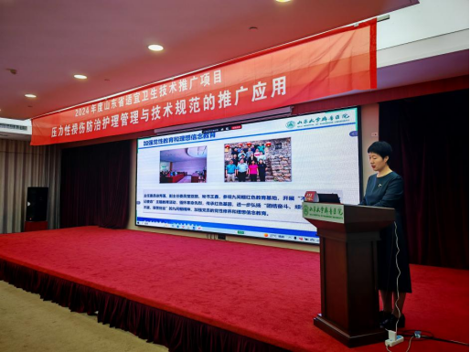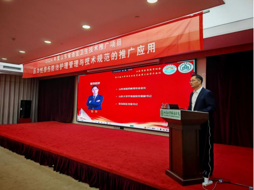 为进一步提升伤口造口护理专业水平,推广压力性损伤防治护理管理与技术规范,9月27日,由山东省医药教育协会伤口造口护理专业委员会主办的学术会议暨“压力性损伤防治护理管理与技术规范推广应用培训班”在山东大学齐鲁医院学术交流中心海棠厅成功举办。山东省医药教育协会会长、山东大学齐鲁医院党委副书记苏华出席会议并致辞。山东大学齐鲁医院护理部副主任张燕主持开幕式。来自省内各级医疗机构的护理管理者、专科护士及相关专业人员齐聚一堂,共话伤口造口护理领域的新进展、新规范。